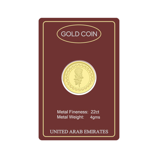 Gold 22KT Flower Design 4 Grams Coin - FKJCON22K2299