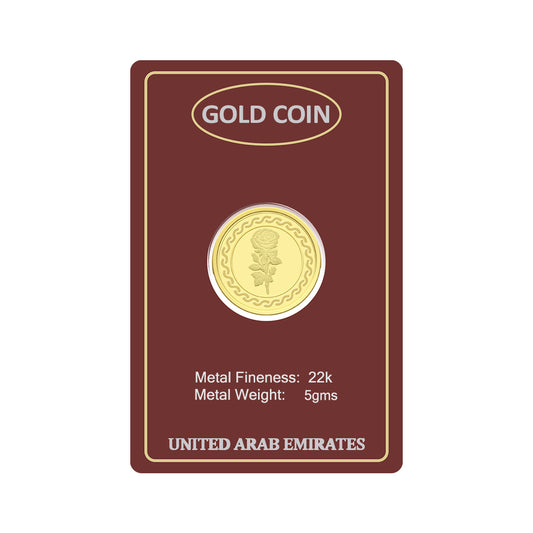 Gold 22KT Flower Design 5 Grams Coin - FKJCON22K2300