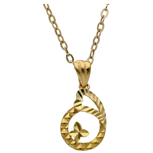 Gold Butterfly In Hollow Tear-drop Shaped Pendant Set 18KT - FKJNKLST18KU6491