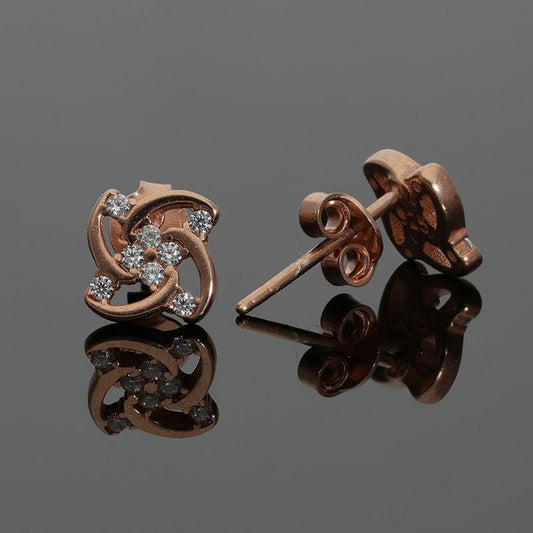 Sterling Silver 925 Rose Gold Plated Flower Stud Earrings - FKJERNSL2484