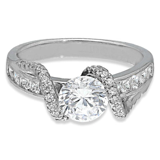 Sterling Silver 925 Spiral Shaped Solitaire Ring - FKJRNSL2995