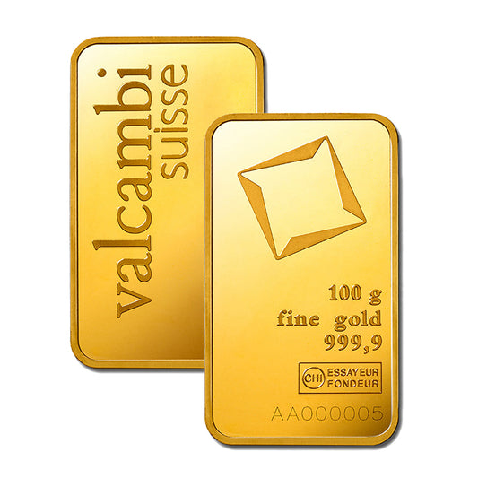 Valcambi Suisse 100 Grams Gold Bar 24KT - FKJGBR24K2174