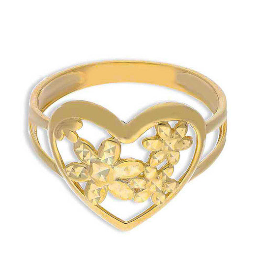 Gold Flowers In Heart Ring 18KT - FKJRN18KU2080