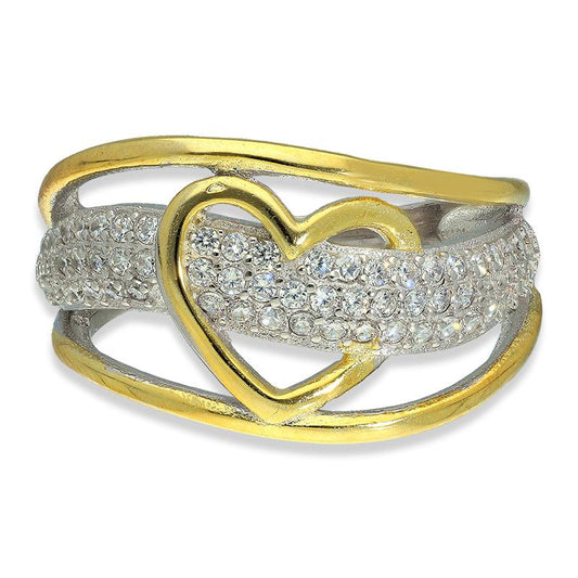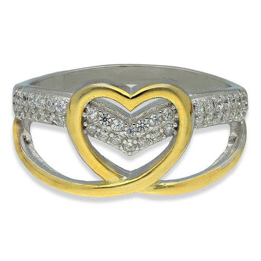 Dual Tone Sterling Silver 925 Heart Shaped Ring - FKJRNSL3003