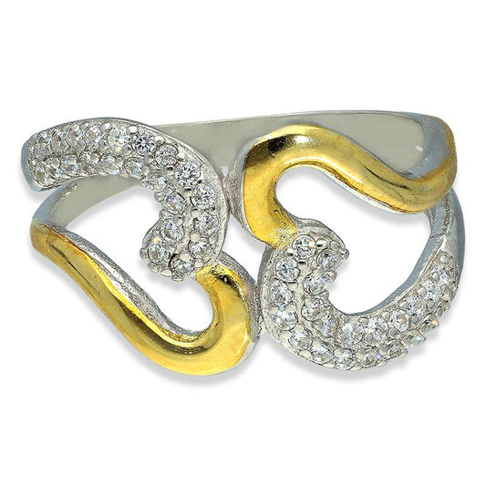 Dual Tone Sterling Silver 925 Twin Hearts Ring - FKJRNSL2994