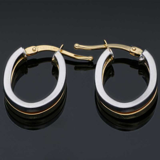 Dual Tone Gold Oval Shaped Hoop Earrings 18KT - FKJERN18KU3096