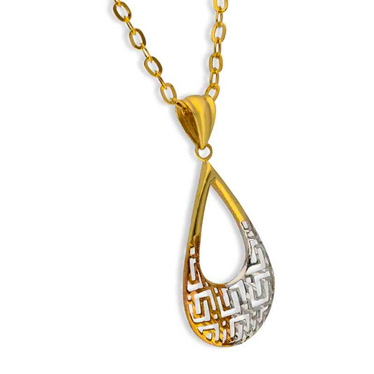 Dual Tone Gold Pear Shaped Pendant 18KT - FKJPND18KU1090