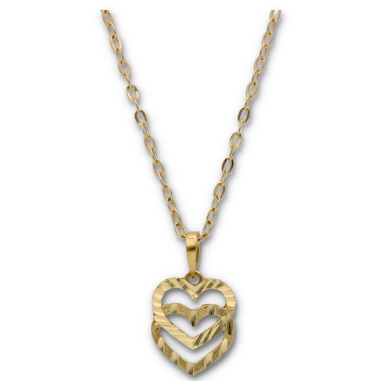 Gold Necklace (Chain with Dual Heart Shaped Pendant) 18KT - FKJNKL18KU6118