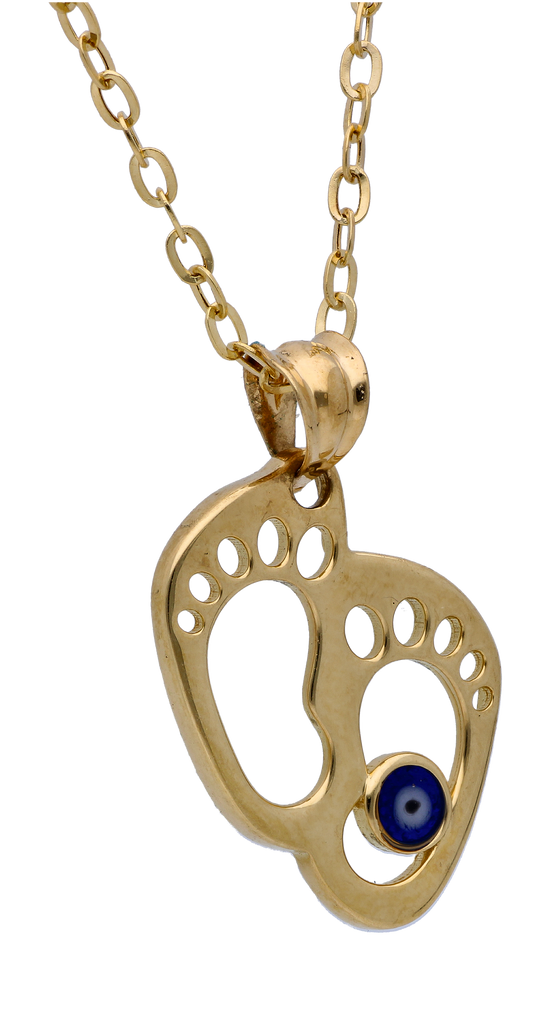 Gold Necklace (Chain with Hollow Foot with Evil Eye Pendant) 18KT - FKJNKL18KU6288