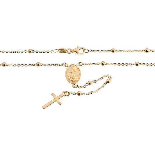 Gold Necklace (Beaded Cross Chain with Rosary Virgin Mary Pendant) 18KT - FKJNKL18K2088