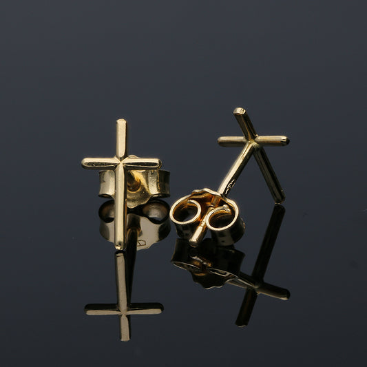 Gold Cross Shaped Stud Earrings 18KT - FKJERN18KU3046