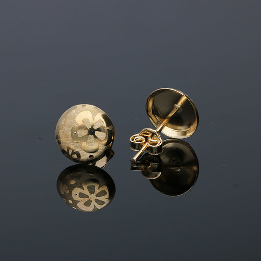 Gold Flower Shaped Stud Earrings 21KT - FKJERN21KU6011