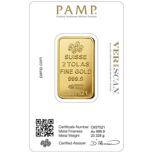 Pamp Suisse Queen Fortuna 2 Tola Gold Bar 24KT - FKJGBR24K2180
