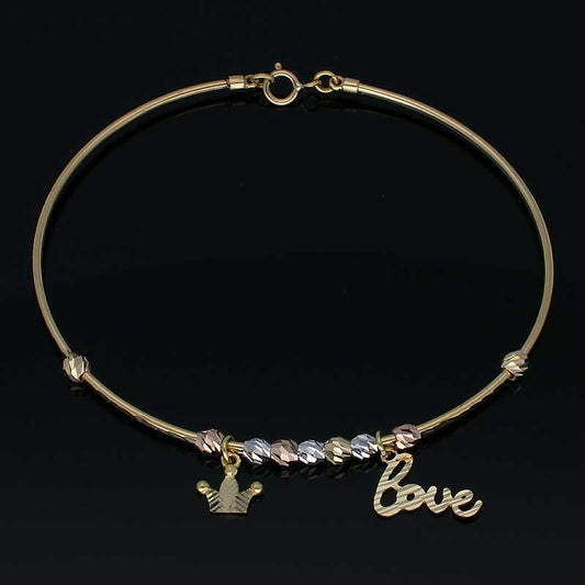 Gold Hanging Crown and Love Bangle in 18KT - FKJBNG18KU2010
