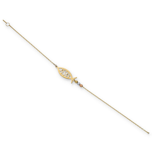 Gold Jesus Fish Bracelet 18KT - FKJBRL18KU6119