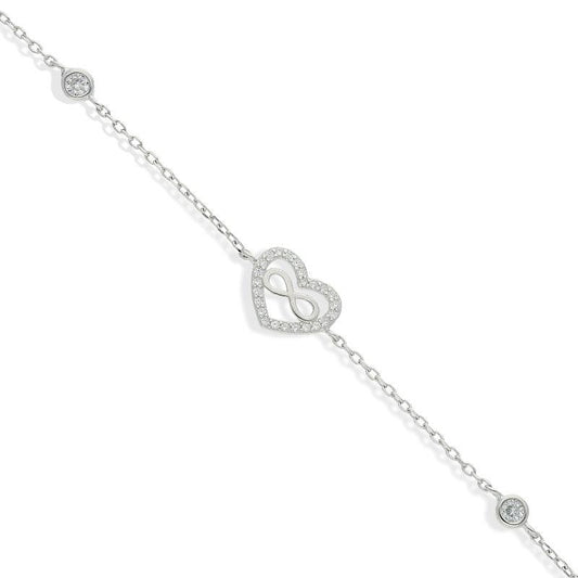 Sterling Silver 925 Heart and Infinity Bracelet - FKJBRLSL2312