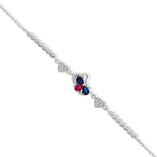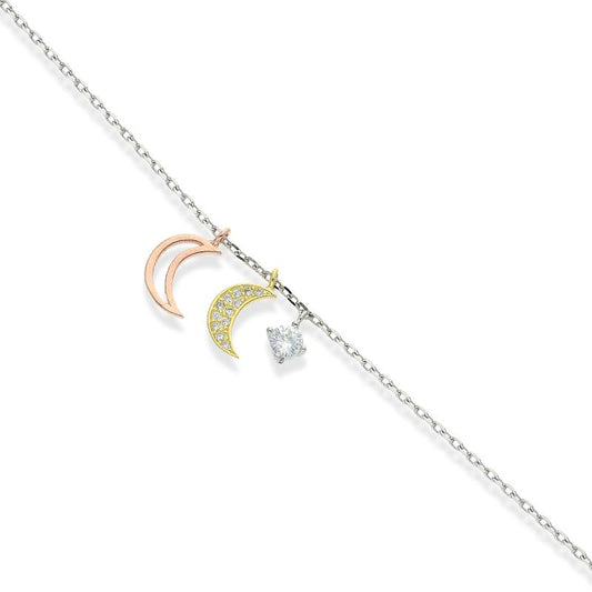 Sterling Silver 925 Tri-Tone Heart Shaped Solitaires Bracelet - FKJBRLSL2318