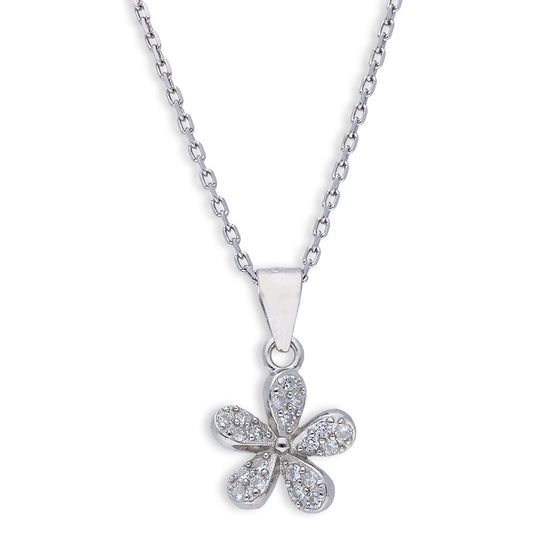Sterling Silver 925 Flower Shaped Pendant Set (Necklace and Earrings) - FKJNKLSTSLU6079
