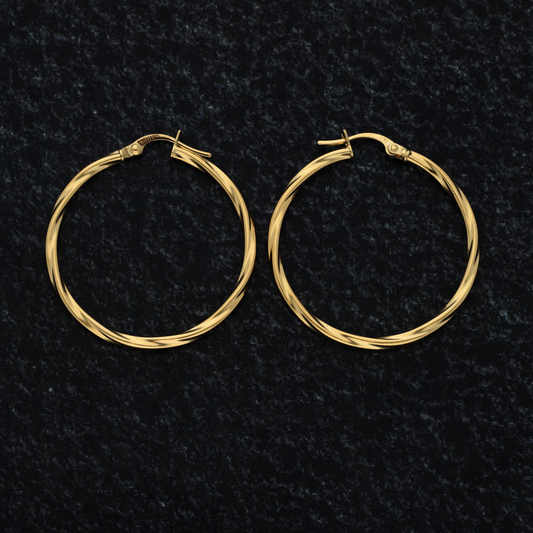 Gold Thin Twisted Hoop Earrings 18KT - FKJERN18K9274