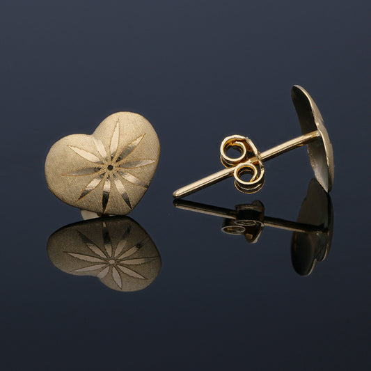 Gold Heart Shaped Stud Earrings 18KT - FKJERN18KU3009