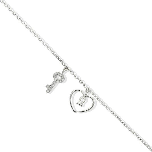 Sterling Silver 925 Heart and Key Bracelet - FKJBRLSL2334