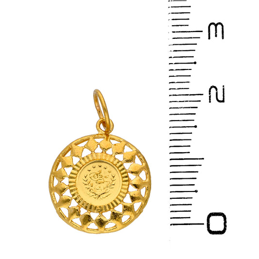Gold Round Shaped Pendant Set (Necklace and Earrings) 21KT - FKJNKLST21KU6071