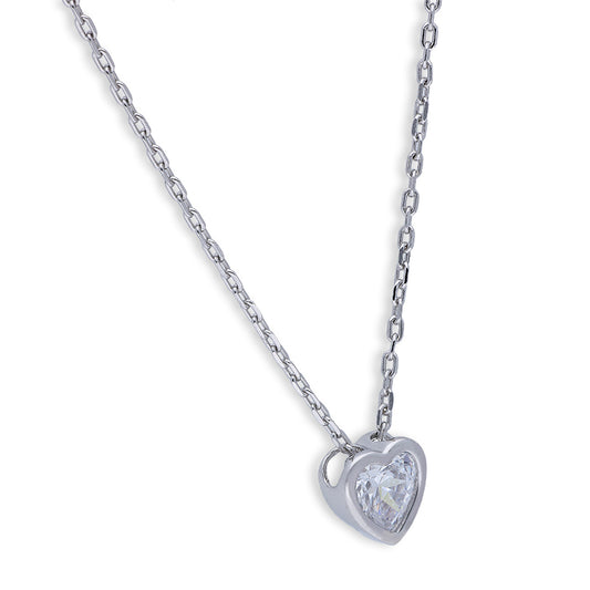 Sterling Silver 925 Heart Solitaire Necklace - FKJNKLSLU6087
