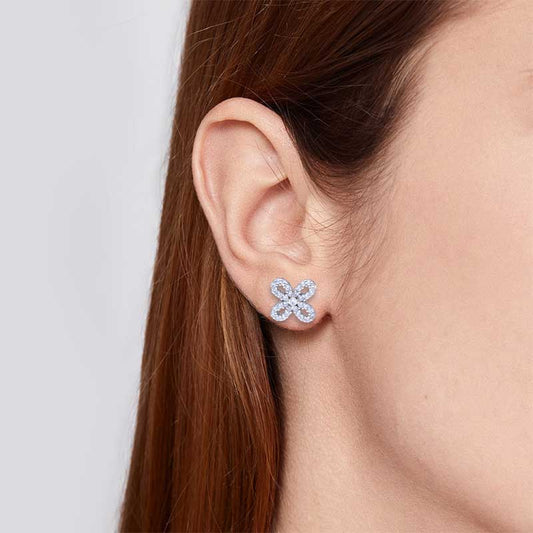 Sterling Silver 925 Flower Shaped Stud Earrings - FKJERNSLU3138
