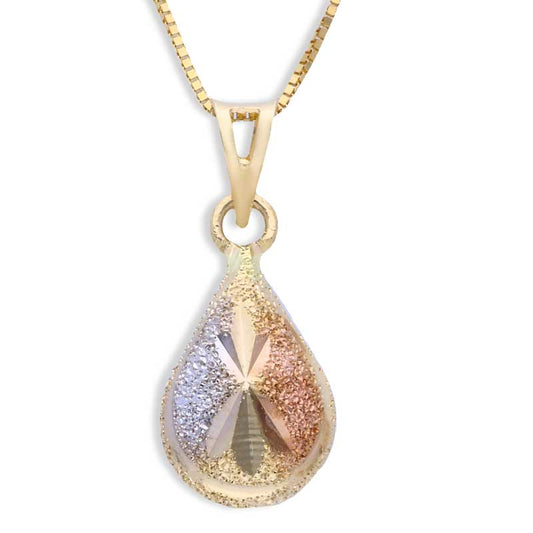 Trio Tone Gold Pear Shaped Pendant Set (Necklace and Earrings) 18KT - FKJNKLST18KU2015