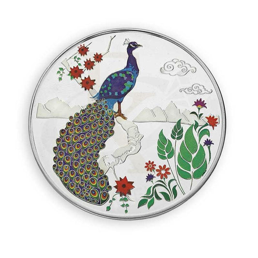 Silver 10 Grams Peacock and Flower Coin in Fine 999 Silver - FKJCONSL3117