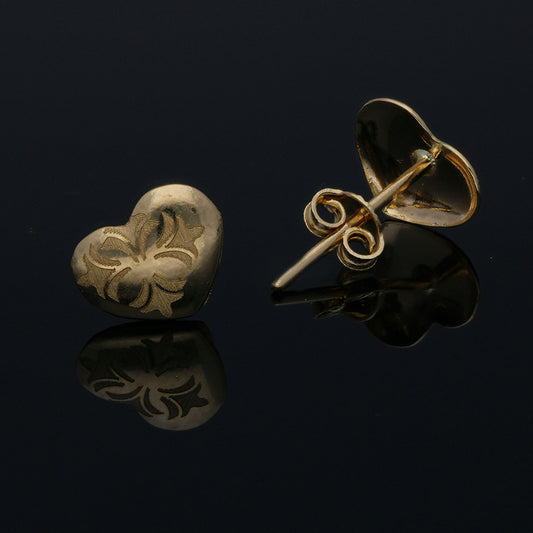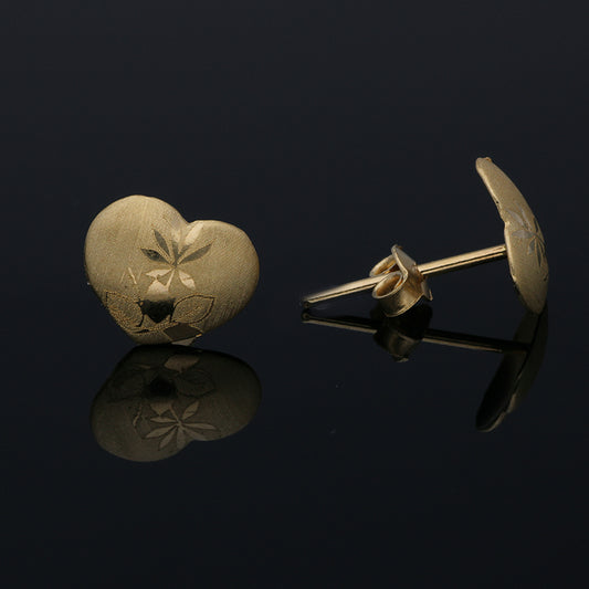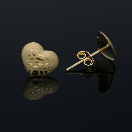 Gold Heart Shaped Stud Earrings 18KT - FKJERN18KU3022