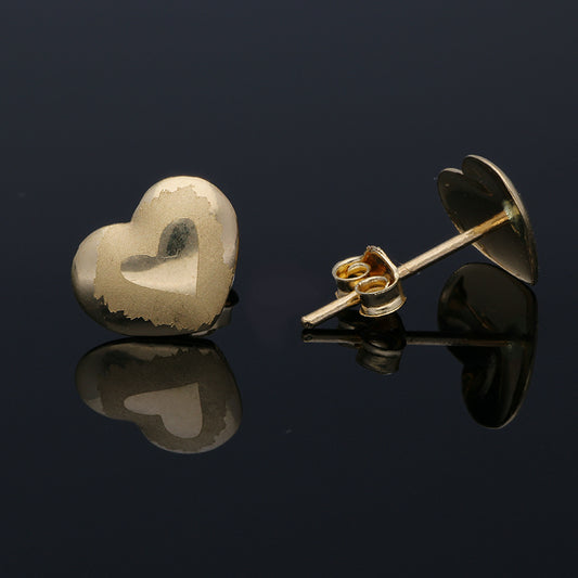 Gold Heart Shaped Stud Earrings 18KT - FKJERN18KU3015