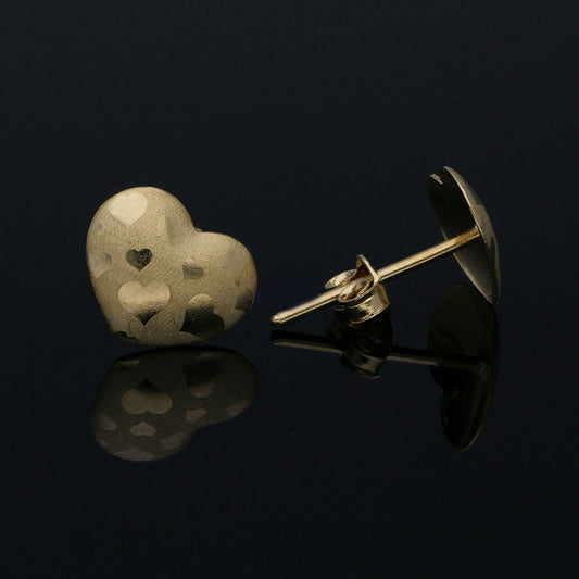 Gold Heart Shaped Stud Earrings 18KT - FKJERN18KU3014