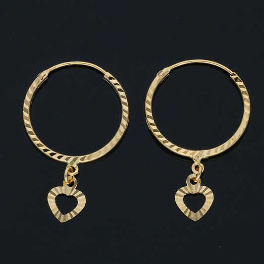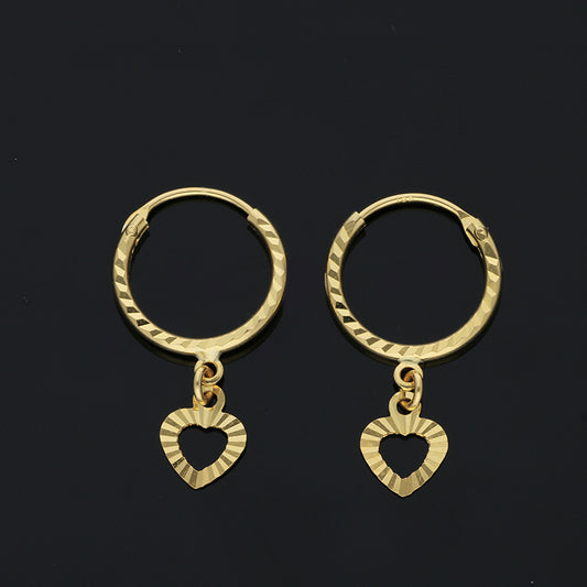 Gold Hanging Heart Hoop Earrings 18KT - FKJERN18KU3025