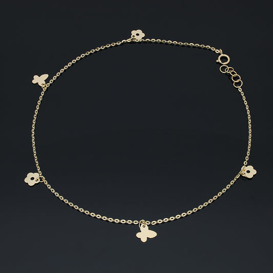 Gold Hanging Flowers and Butterflies Anklet 18KT - FKJANKL18KU5003
