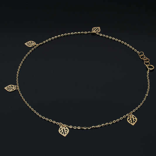 Gold Hanging Leaf Anklet 18KT - FKJANKL18KU5002