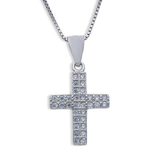 Sterling Silver 925 Cross Shaped Pendant Set (Necklace and Earrings) - FKJNKLSTSLU2019