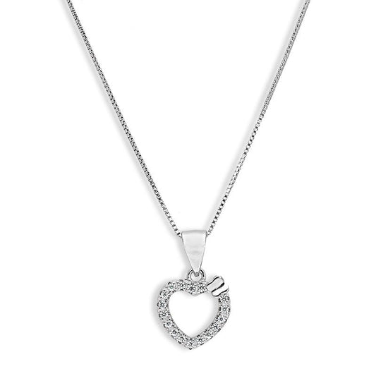Sterling Silver 925 Heart Pendant Set (Necklace and Earrings) - FKJNKLSTSL2327