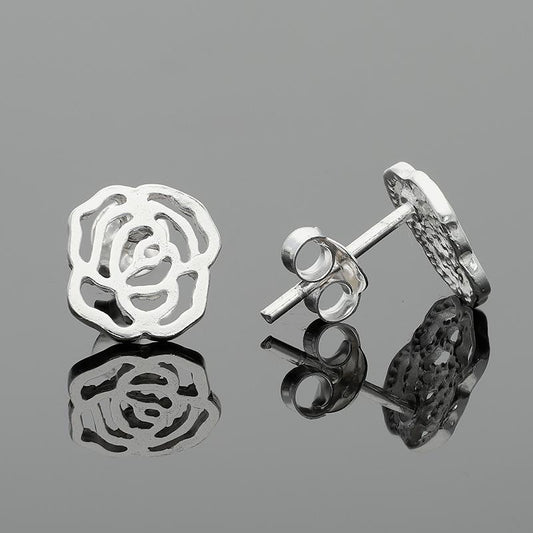 Sterling Silver 925 Rose Flower Shaped Earrings - FKJERNSL2259