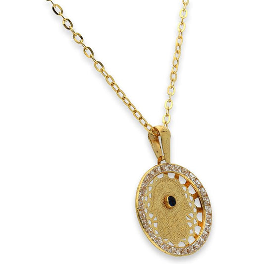 Gold Necklace (Chain with Round Shaped Hamsa Hand Pendant) 18KT - FKJNKL18K2356