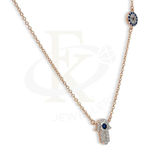 Sterling Silver 925 Rose Gold Plated Hamsa Hand with Evil Eye Necklace - FKJNKLSL2591