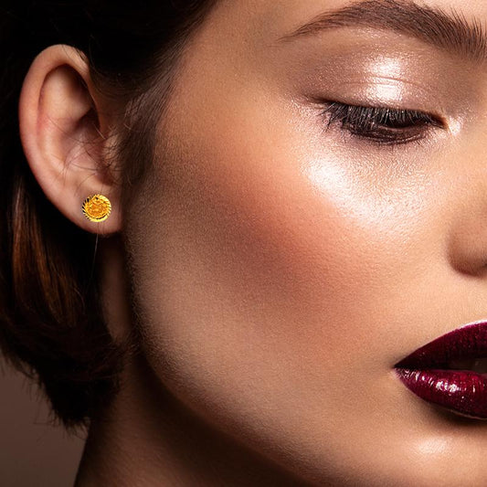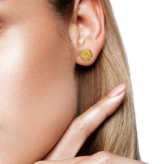 Gold Coin Shaped Stud Earrings 21KT - FKJERN21K2273
