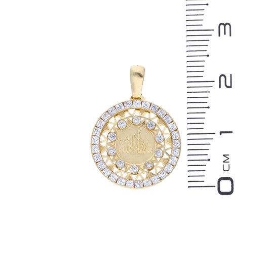 Gold Round Shaped Allah Pendant 18KT - FKJPND18KU1077