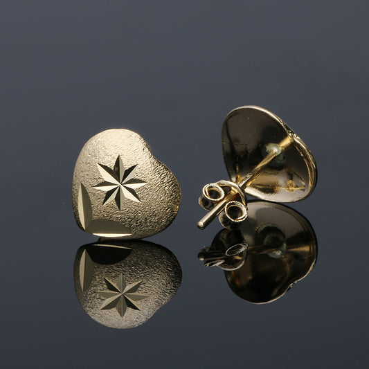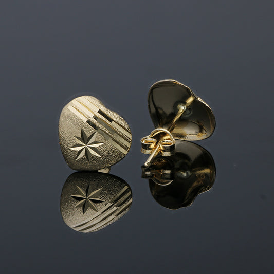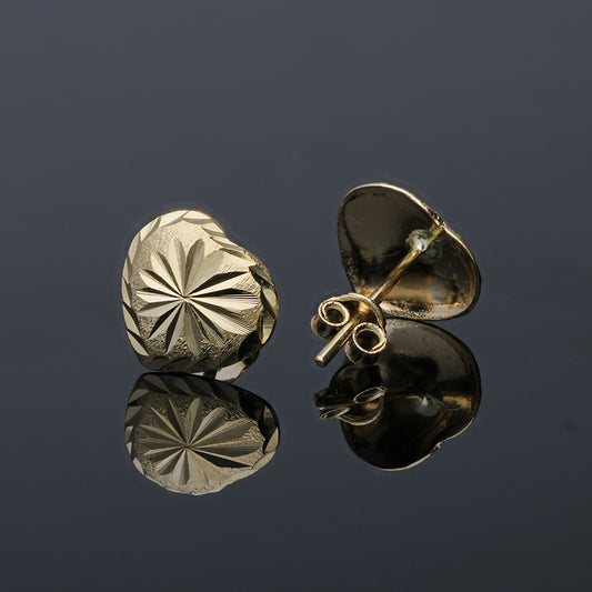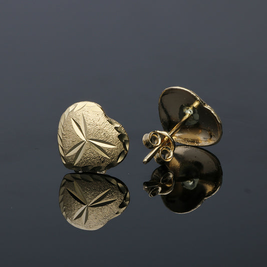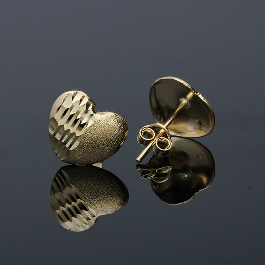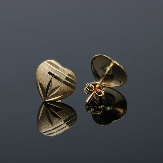 Gold Heart Shaped Stud Earrings 18KT - FKJERN18KU3043