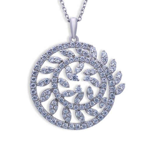 Sterling Silver 925 Flower Shaped Pendant Set (Necklace, Earrings and Ring) - FKJNKLSTSLU2027