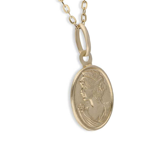 Gold Necklace (Chain with Queen Oval Shaped Pendant) 18KT - FKJNKL18KU1104