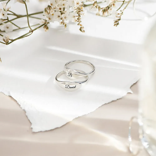 Gold & Silver Personalized Custom Engraved Signet Ring - FKJRNU6223