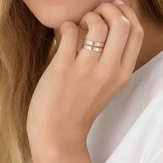 Gold & Silver Personalized Engraved Thin Name Ring - FKJRNU6224