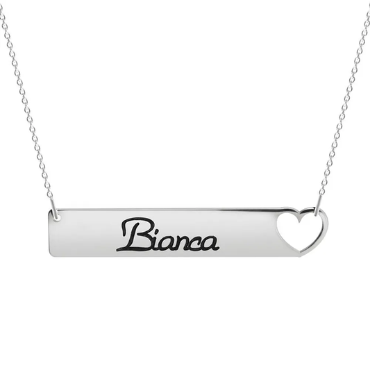 Gold & Silver Personalized Cut Out Heart Bar Necklace - FKJNKLU6179