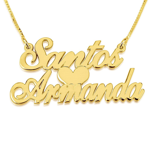 Gold & Silver Personalized Double Name with Heart Necklace - FKJNKLU6172
